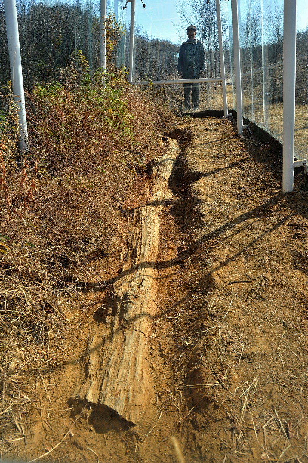 " 长子国家级重点保护木化石集中产地位于上党盆地西南,距长治市32千米,位于长子县城西南10千米的南陈乡团城-东峪-壑只村一带,南侧边界与晋城市高平县相接。产地面积13平方千米。 产地位于山西东南部上党盆地西侧,大地构造位置位于华北地台中部太行山断褶带西部,沁水断陷长治新裂陷西南部,区内褶皱构造简单,断裂构造不发育,岩层多表现为稳定向西倾斜的单斜构造,岩层倾角5°-11°,区内出露地层由老到新有:古生界二叠系、中生界三叠系、新生界第四系。 产地内古生物化石单一,均为木化石,但是赋存密度高、数量大,已发现并经过精确定位的木化石共324颗,丢失175颗,现存149颗,分布在13平方千米的范围内。按照《国家级古生物化石分级标准(试行)》的木化石分级标准,产地内国家一级重点保护木化石30颗(木化石长度大于10m或者直径大于1m而且树形保存清晰,结构、树形非常完整),国家二级重点保护木化石34颗(木化石长度在5m-10m之间或者直径在80cm-100cm之间),国家三级重点保护木化石45颗(木化石长度在3m-5m之间或者直径在50cm-80cm之间)。这些木化石部分裸露于地表,部分被黄土覆盖,其余部分则仍与砂岩紧密接触。产地内木化石主要类型有表面褐灰色普通木化石、表面铁白云石化燧石质木化石、蛋白石-碧玉质木化石、微晶石英-石英质木化石、木化石印模化石。 根据木化石的赋存层位和产出密度,已将该产地划分为两个木化石集中区:壑只-东峪集中区和团城集中区。 1、壑只-东峪集中区内木化石赋存于上二叠统孙家沟组黄绿色长石砂岩中,赋存于该组上、下两个层位;下层多为长度较短的小型木化石;上层木化石多为长度6-15m的大型木化石。该区木化石多以燧石质表面褐铁矿化为标志特征,其中比较特殊的蛋白石-碧玉质木化石也在此区内。 该区木化石总计134颗,其中丢失12颗,现存122颗,丢失率为8.96%。现存的122颗木化石中,经测量定级的一级重点保护木化石14颗,二级重点保护木化石22颗,三级重点保护木化石32颗,一级、二级、三级木化石占现存木化石总数的55.74%。 2、团城集中区内木化石赋存于上二叠统孙家沟组和中二叠统石盒子组两个组三个层位,全区木化石共100颗,丢失73颗,现存27颗,丢失率高达73%。现存27颗木化石中,一、二、三级重点保护木化石共19颗,且该区木化石以燧石质木化石为主,局部存在微晶-粗晶石英木化石,木化石表面碳化。"
