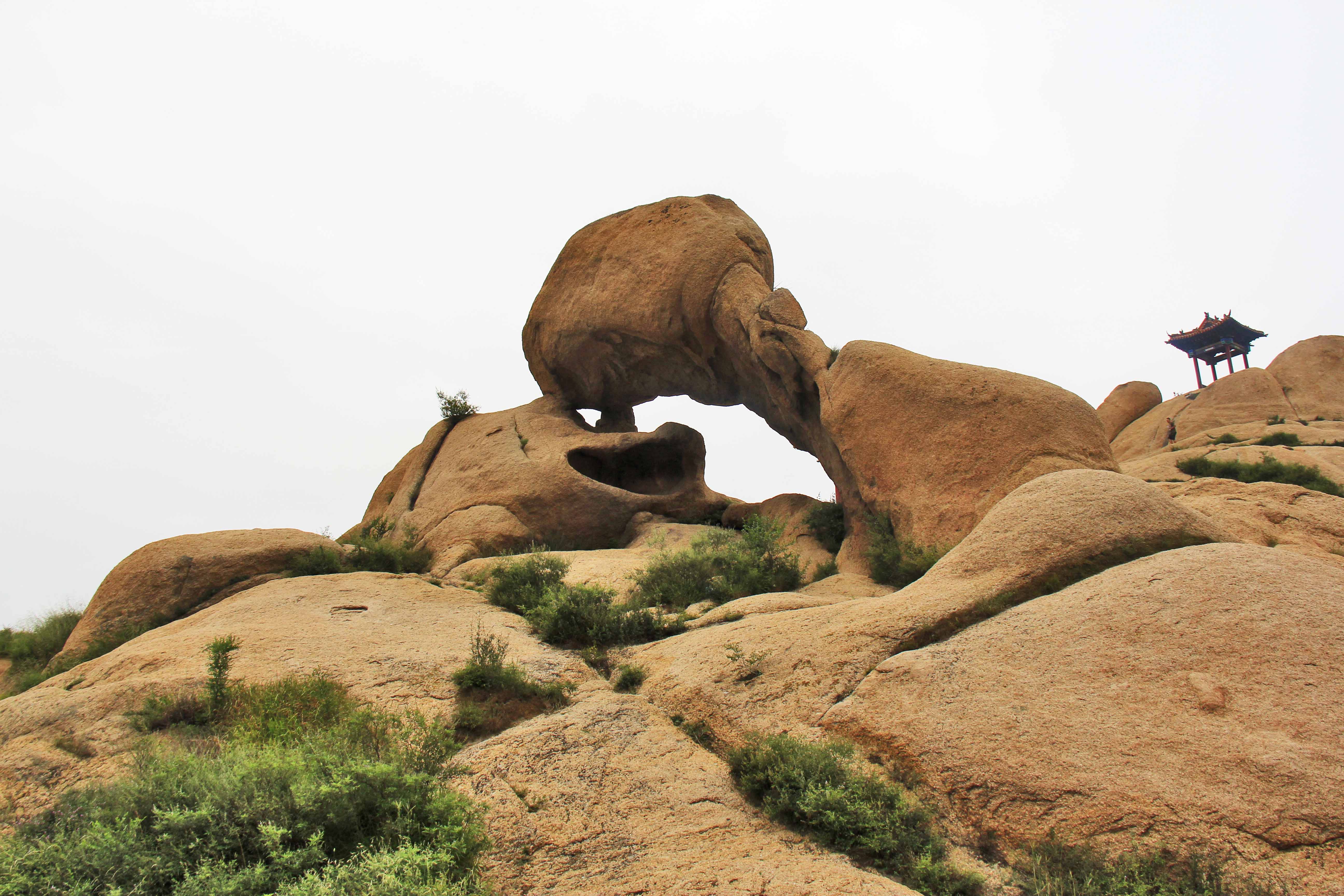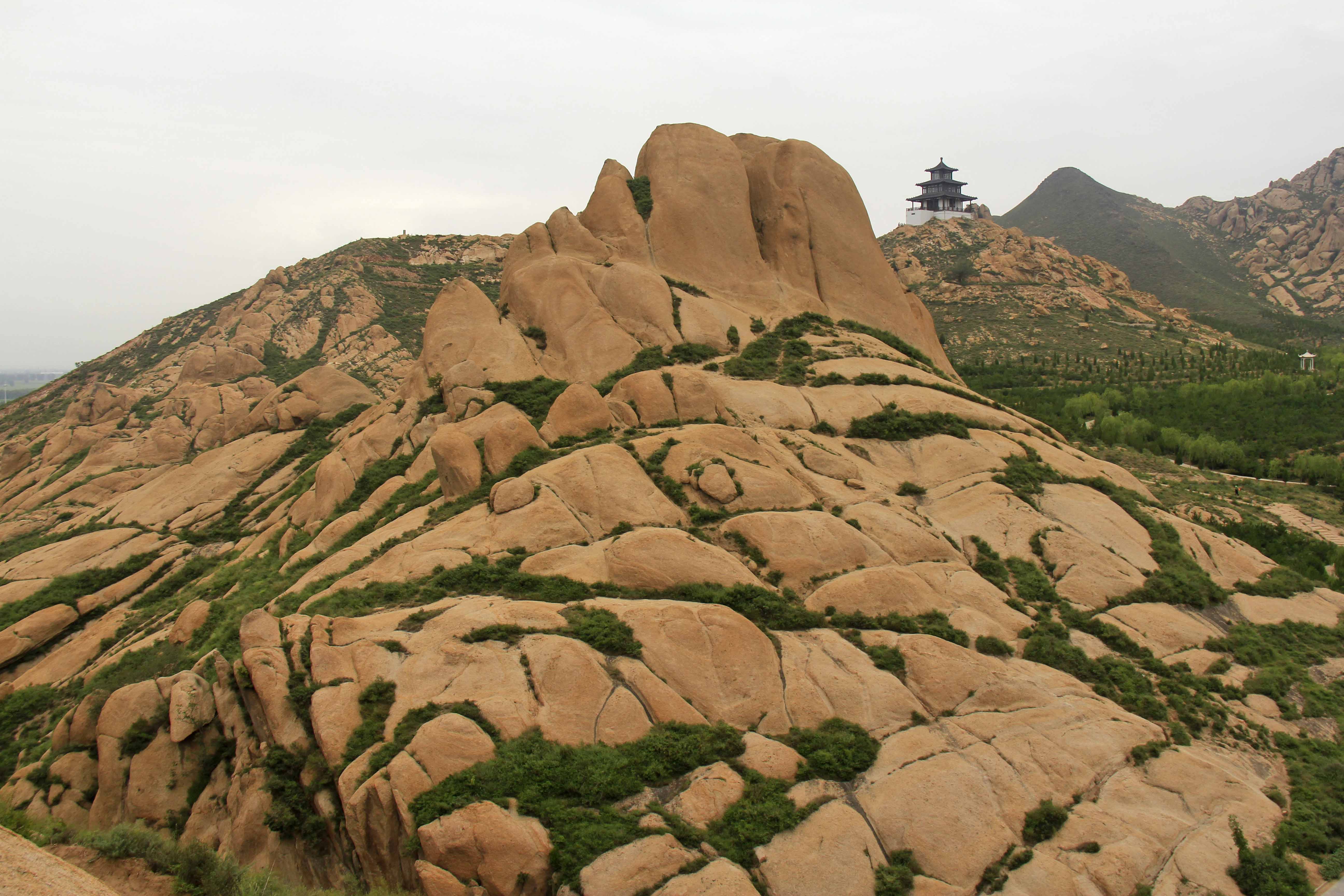 原平天涯山花岗岩出露范围46平方千米,基岩为变质中酸性侵入岩,包括变质巨斑状黑云母(斜长)花岗岩与变质巨斑状黑云母二长花岗岩两种岩性,主要发育莲花山及石鼓石象形石。