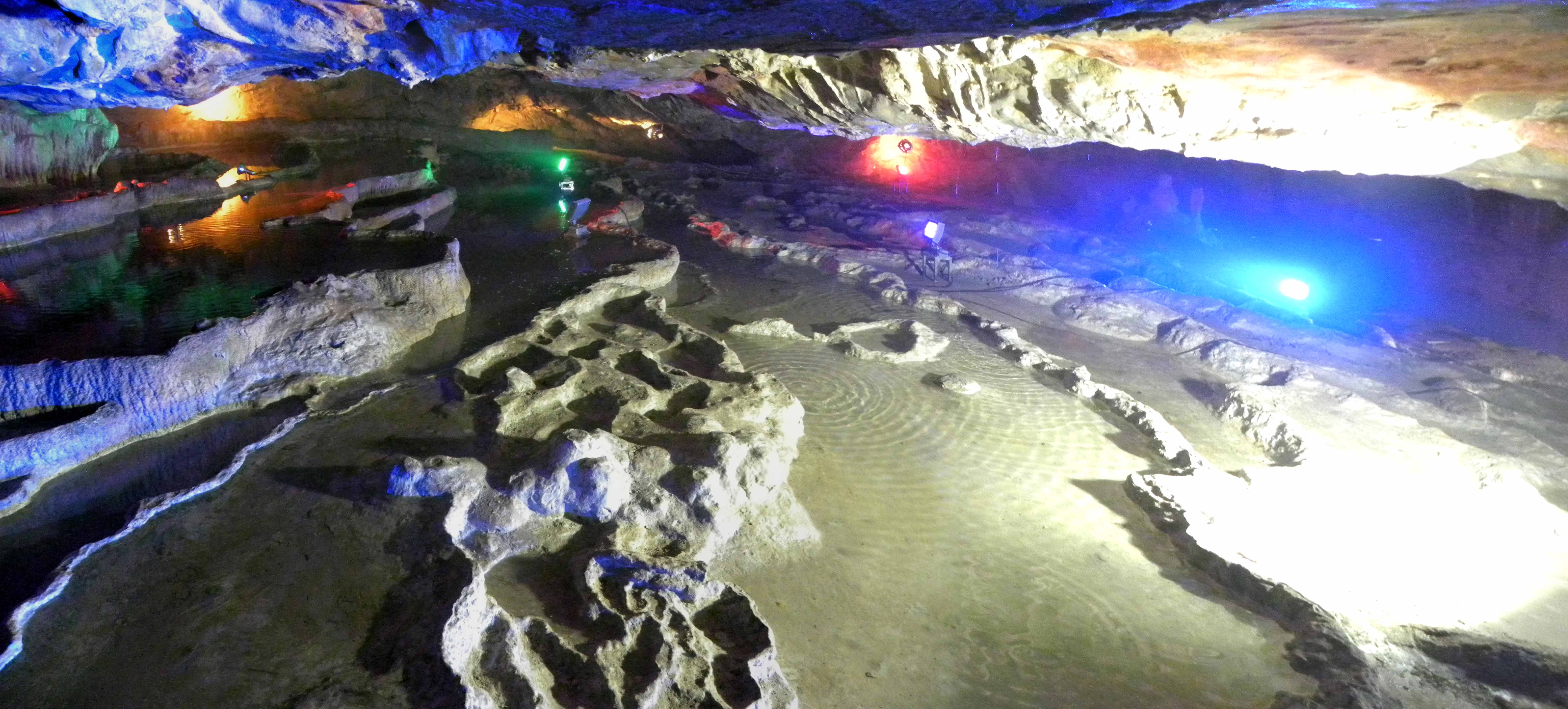 溶洞群中洞内面积最大、钟乳石发育最多的当属黑龙洞。黑龙洞发育于马家沟组四段灰岩中,溶洞整体为一弧形洞穴,溶洞长约40米,纵深约10米,面积约400平方米,洞口高4米,朝向251°。洞内发育石柱、石幔、边石堤等,其中石柱和边石堤是该洞内最主要的钟乳石。