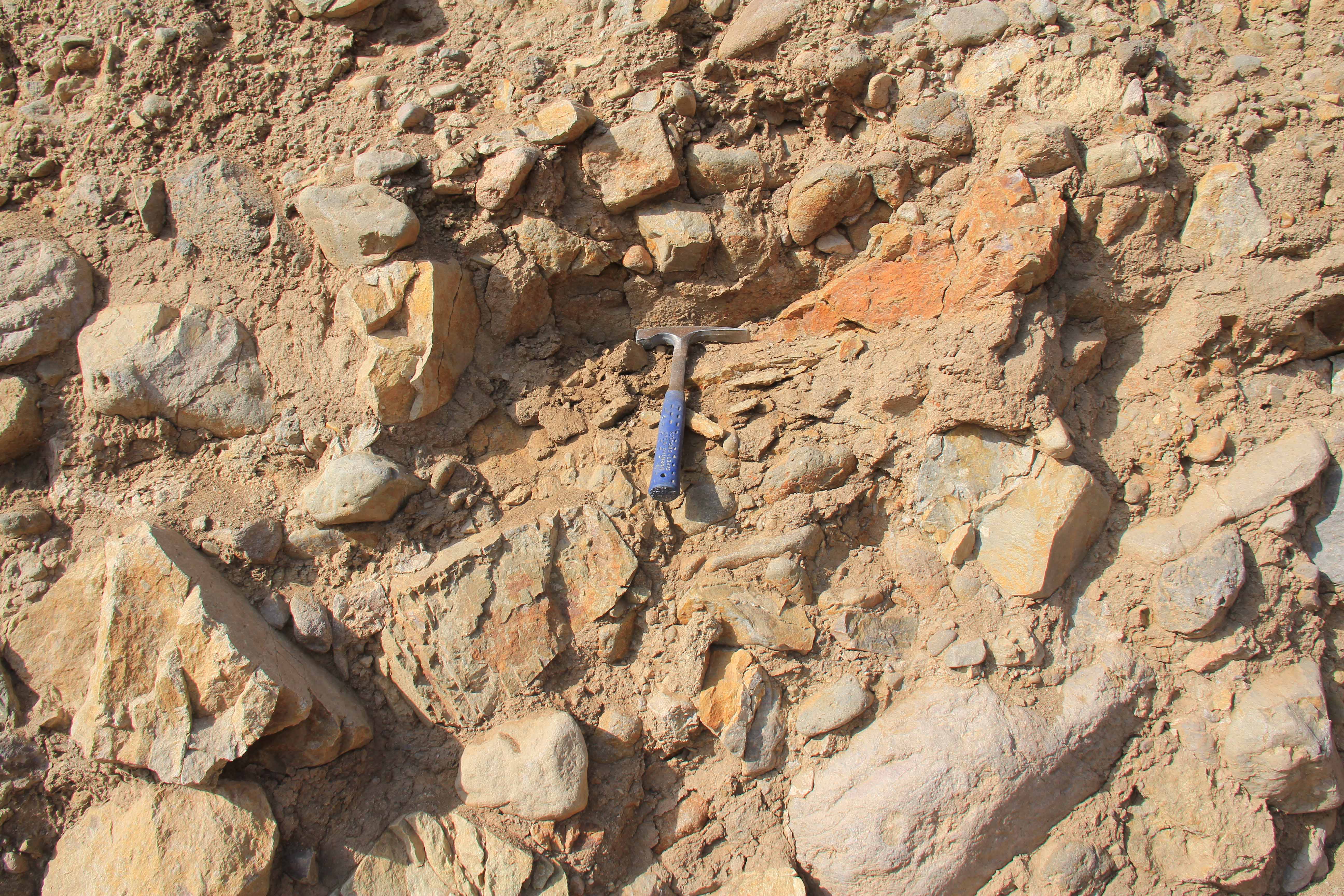张家口组厚394.7米,为中基性—酸性多喷发旋回的火山岩系,可见石英粗面岩、英安质凝灰熔岩、英安质火山角砾岩、气孔状粗安岩等。抢风岭段厚100.5米,上部为气孔状粗安岩、下部气孔状粗安岩夹粗安质角砾熔岩,含辉石粗安岩;向阳村段294.2米,岩性为石英粗面岩、英安质凝灰熔岩,英安质火山角砾岩。张家口组与下伏太原组为不整合接触,抢风岭段与向阳村段为平行不整合接触,向阳村段与上覆大北沟组野西沟段为平行不整合接触。