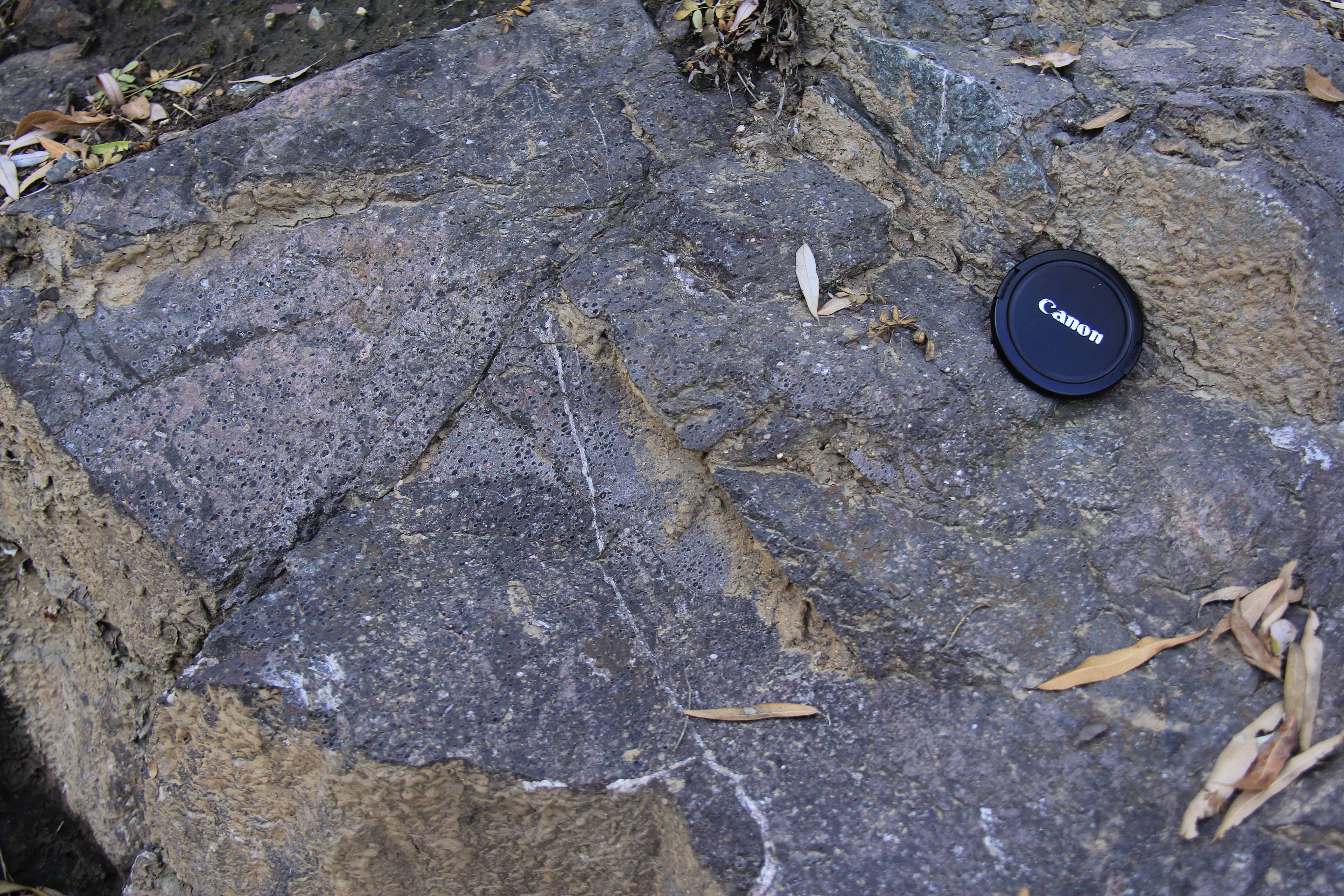 白家滩一带,安山岩共出露3.5平方千米,主要岩性为安山岩、英安安山岩,厚度为492米。该剖面自下而上分为四个韵律,韵律一厚度为78.7米,以紫红色斑状英安岩为主和下伏吕梁群黑云斜长片麻岩呈角度不整合接触关系;韵律二厚度为262.5米,致密状安山岩与杏仁状安山岩互层;韵律三厚度为138.4米,以致密状安山岩为主,夹杏仁状安山岩、英安岩;韵律四厚度为13米,岩性为斑状英安流纹岩,与上覆地层霍山组紫红色薄层砂岩呈平行不整合接触。剖面上岩层覆盖少,出露良好,标志层清楚。通过对小两岭组火山岩与熊耳群火山岩的地层层位、岩相学、地球化学和Nd同位素特征的对比,以及年代学方面的证据,表明小两岭组火山岩与熊耳群火山岩相当,是同期岩浆活动在不同空间的产物,都形成于大陆裂谷环境,可能与地幔柱有关。