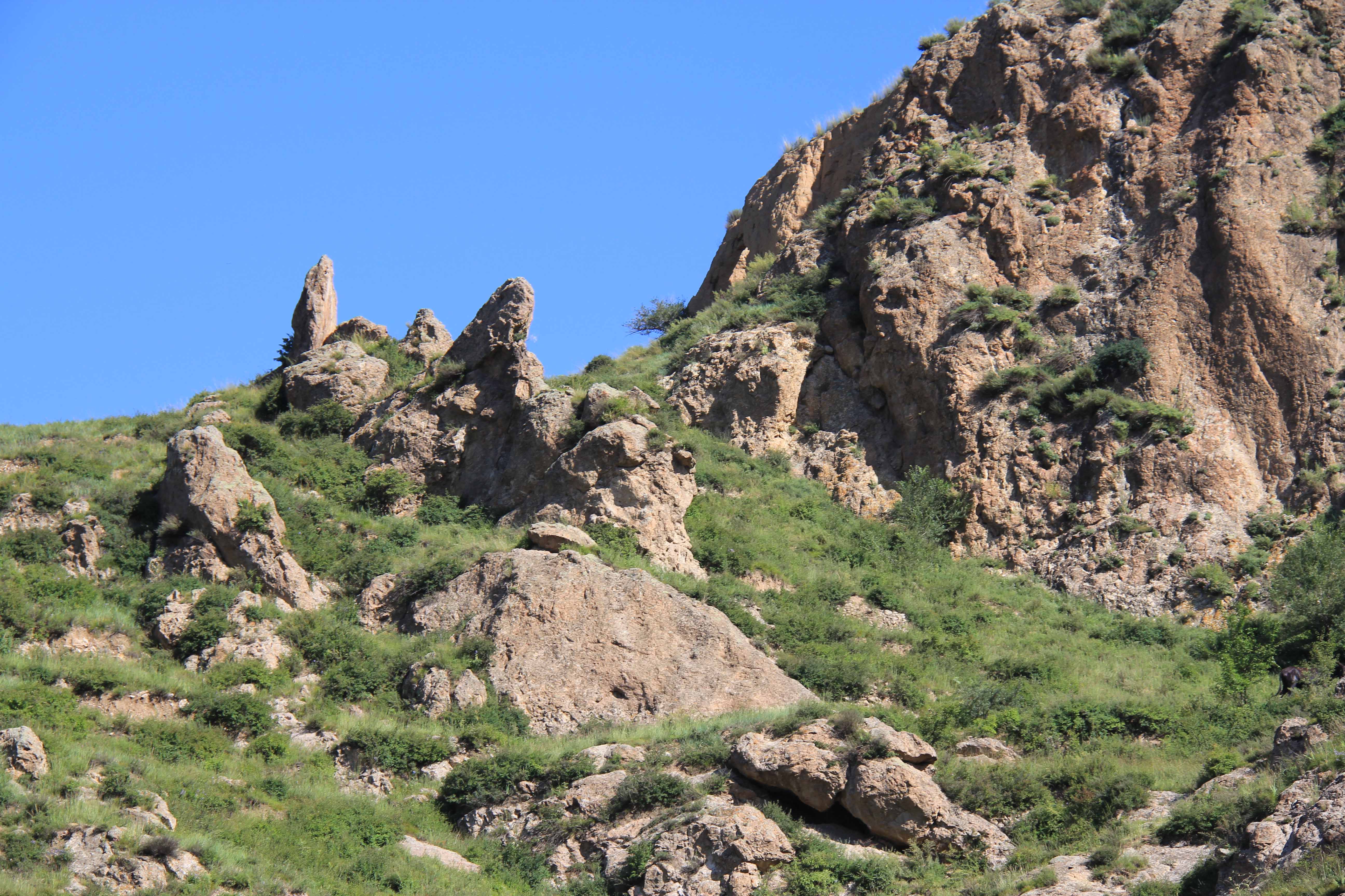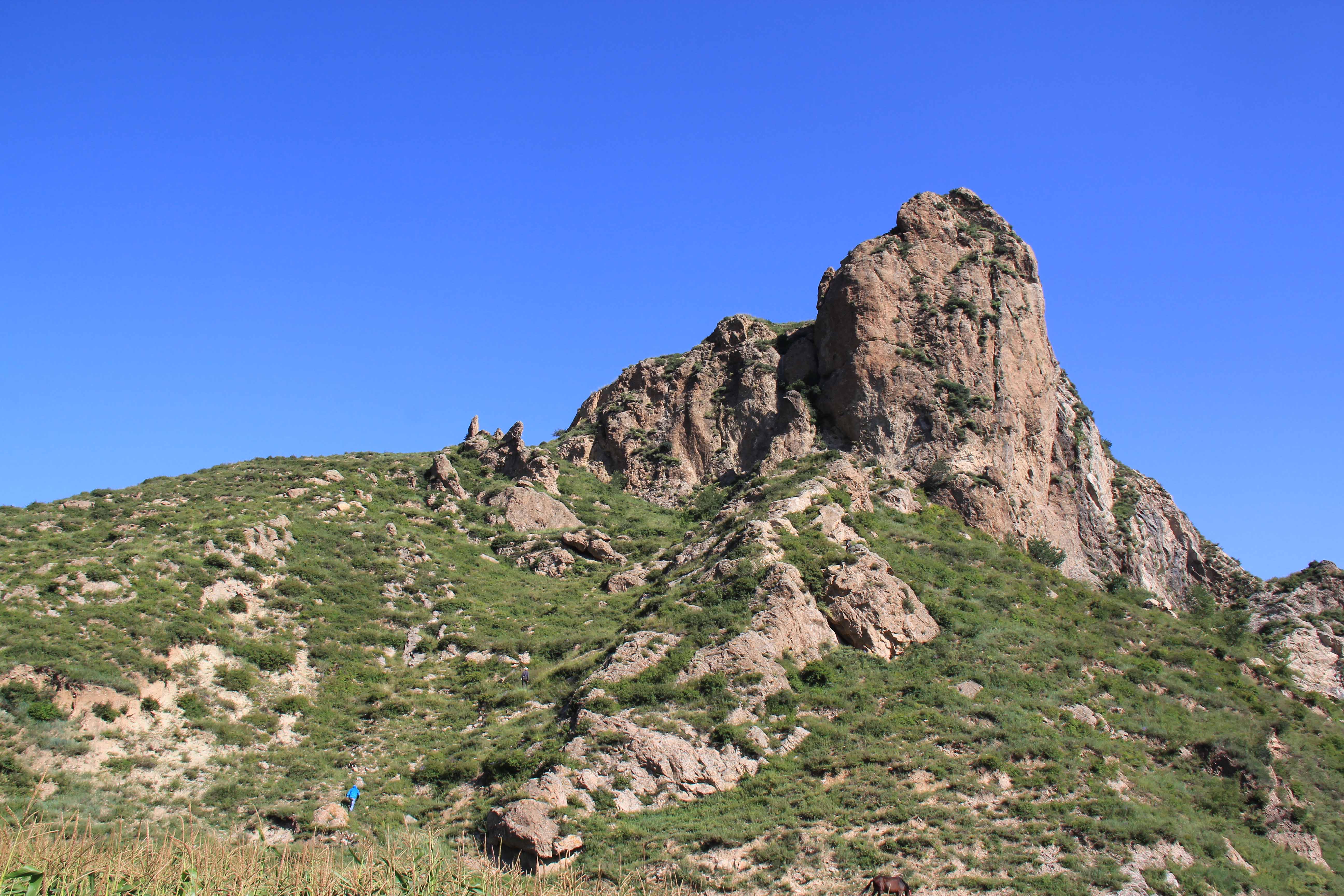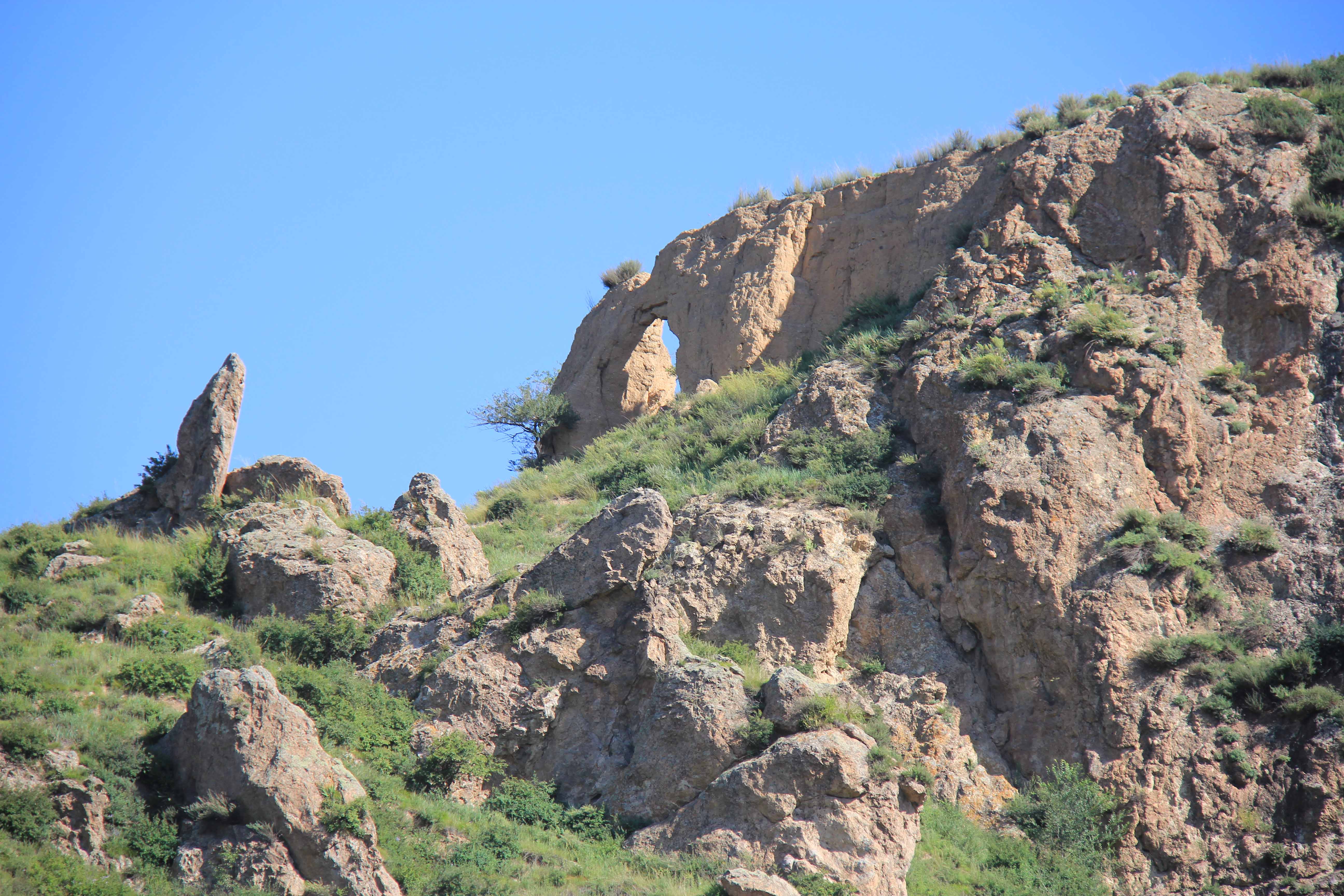 浑源羊投崖火山颈地貌基岩为流纹斑岩,边部含同成分的角砾岩,产状内倾、陡立,外围与长条状次火山岩相石英斑岩、流纹岩相连。火山颈地貌呈钟状、陡立,为局部侵出的产物,峰顶海拔1460米,火山颈高30米,长100米。植被以灌木为主,东侧为耕地,景色怡人。火山颈出露地表,具一定观赏价值。