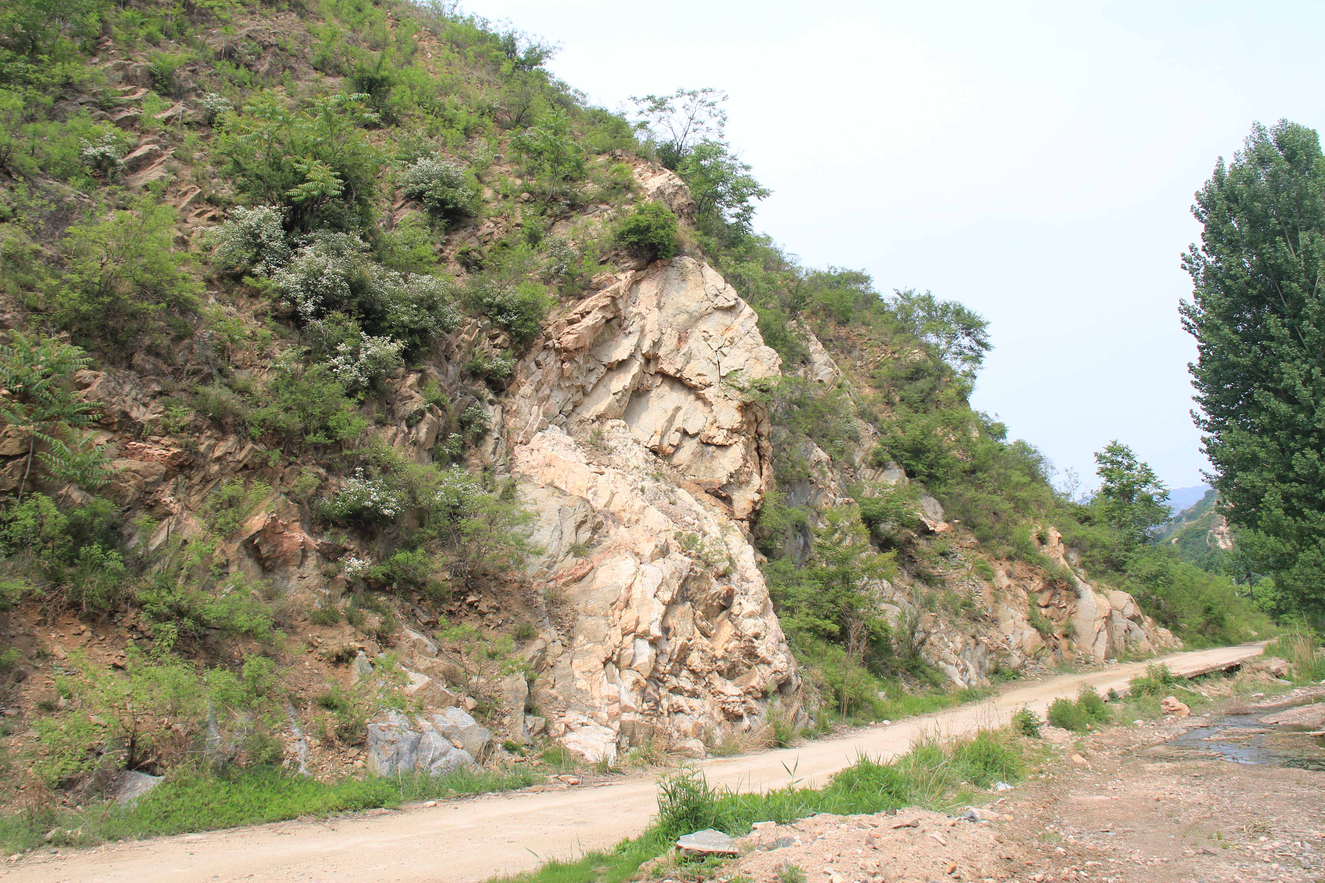 盂县青崖侵入岩剖面长6千米,起点在上石塘村西,终点在回岭只村。青崖岩体以岩株状侵入檀山坪(角闪)黑云斜长片麻岩中,在岩体北部截断五台早期斜长角闪岩,岩体内有斜长角闪岩捕虏体,又被吕梁期变质花岗伟晶岩侵入。