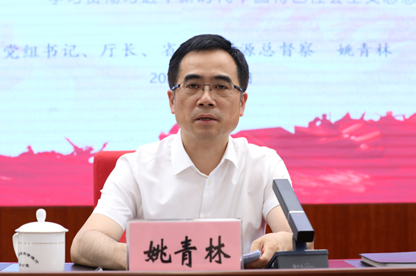 姚青林指出,党的十八大以来,习近平总书记多次强调,我们正在进行具有许多新的历史特点的伟大斗争,发扬斗争精神是进行伟大斗争的重要前提和必然要求。习近平总书记在党的二十大报告22次讲到“斗争”,明确把“敢于斗争、善于斗争”作为“三个务必”重要内容。在主题教育必读书籍中,有3个章节专题论述斗争精神,把“坚持发扬斗争精神”作为必须牢牢把握的重大原则之一,强调要“依靠顽强斗争打开事业发展新天地”。他说,全省自然资源系统承担着严守资源安全底线、优化国土空间格局、促进绿色低碳发展、维护资源资产权益等重大使命,深刻领会斗争精神的时代内涵,把握斗争精神的时代要求,对于履行好“两统一”核心职责,以斗争精神引领自然资源事业高质量发展具有重要意义。