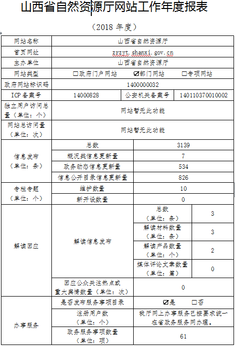 山西省自然资源厅网站工作年度报表(2018年度)