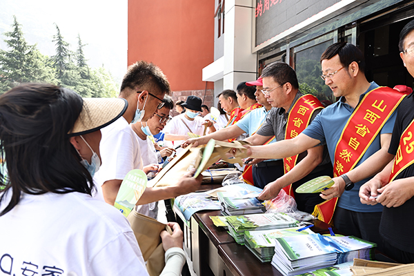土地日当天,省自然资源厅在机关大厅举办全国土地日主题书画作品展、摆放宣传展板;在山西地质博物馆门口搭建拱门、气柱,张贴宣传标语,向市民发放《自然资源100问》《珍惜资源 节约利用》等宣传资料,详细讲解自然资源科普知识,鼓励市民将自然资源知识融入日常生活,号召市民要像保护大熊猫一样保护耕地。深入太行大峡谷自然资源科普基地、走进长治市壶关县树人小学开展宣传活动,发放科普宣传物品和资料,为在校师生开展题为《黄土的前世今生》的科普讲座,引导小学生从小树立珍惜资源、保护环境的意识;与太行大峡谷科普基地、榆社县化石基地、宁武万年冰洞科普基地、山西地质博物馆等省内多家自然资源科普基地同步开展主题宣传活动,活动受众逾100万人次,受到社会广泛关注。