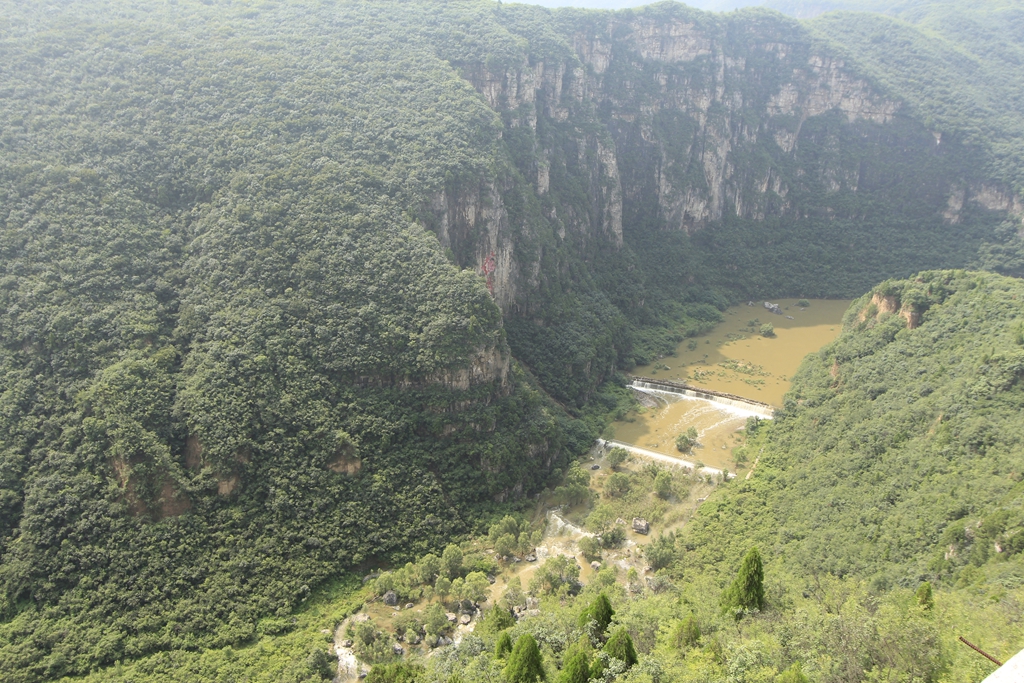 丹河纵贯公园中央,呈蛇形弯曲延伸,形成典型蛇曲谷。峡谷两侧峭壁林立、峡谷险峻,瓮谷、围谷、悬谷、蛇曲谷、“U”形谷形态各异,峡谷间山脊多姿多态,阶状长崖、线形长崖、环形长崖、舌形长崖、石墙、离堆山钙化阶地、象形石等地质遗迹景观琳琅满目,山体顶部平台、峰丛、孤峰气势磅礴,上游形成壅塞水塘,下游形成冲击水潭,中间遍布小瀑布,或小激流。泉、瀑、溪、潭、沼泽、湿地遍布景区,水体碧绿清澈。峰谷纵横、怪石林立、崖台交替、层峦叠障、雄中含秀、险中带奇、异彩纷呈,构成该地质公园独具特色的地貌景观,不仅是公园地质景观的闪光之处,也是太行山特殊风景地貌的典型微缩代表,更是研究和欣赏流水地貌、构造地貌、喀斯特地貌和重力地貌的极佳区域。