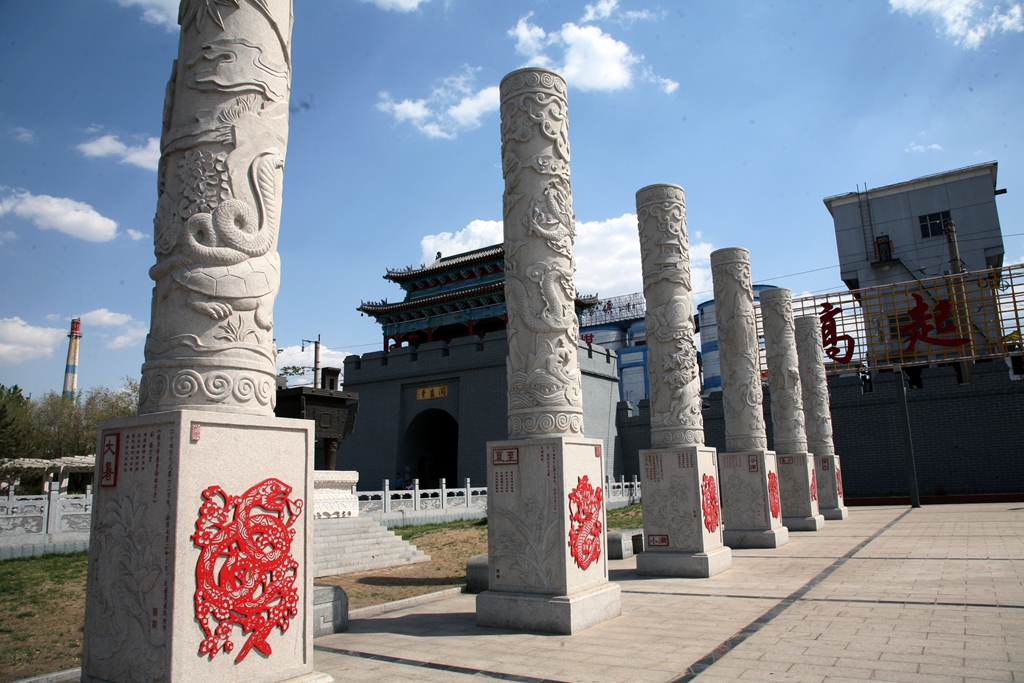 石头村主体是村落,户型布局为民居四合院,两出水坡屋顶为瓦屋面,正房与偏房高低不同,错落有致,有落差的设计充分吸收了阳光照射,采光效果甚佳,充分展现了矿工的居住习惯。在石头村里,不仅能品尝到北方特有的风味饭菜,还能欣赏到来自全国许多省份的巨型奇石。