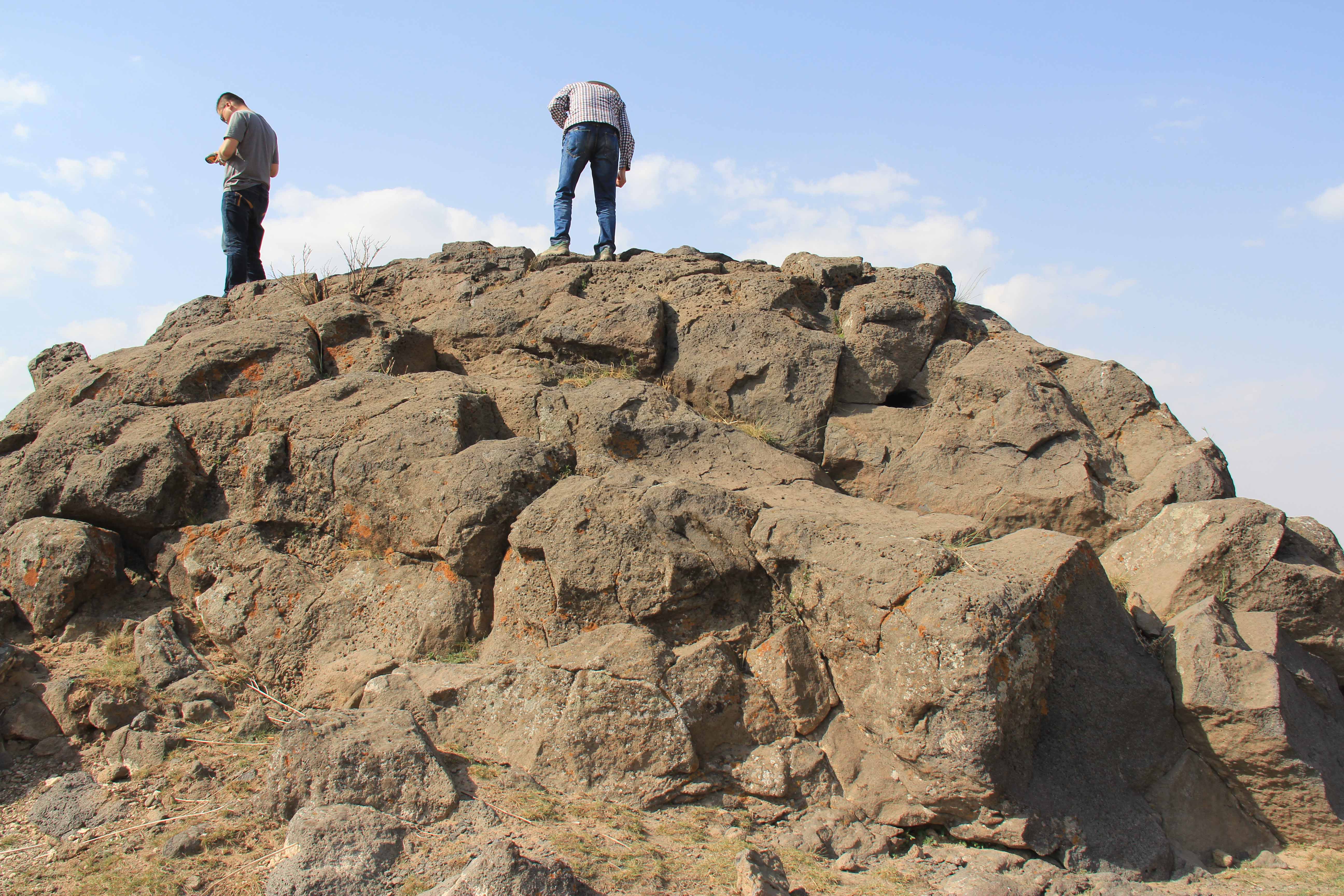 熔岩锥为玄武岩岩浆沿裂隙、单一通道喷溢形成的低矮的鼓包。岩浆持续喷溢,熔岩锥周围形成了明显的熔岩流动构造。喷气锥是在熔岩流表层已经凝结成硬壳,壳体下的熔岩还在流动时,熔岩中较多的气体聚集在壳体下,气体产生的压力使壳体下还在流动的熔岩和气体从壳层的裂口中喷出,至压力平衡为止(徐平,郭敏泰,2009)。锥体岩性为橄榄玄武岩,细斑状结构,基质为间粒结构为主,尚有交织结构,及辉绿结构,矿物组分极少有次生变化(1:25万应县幅),K-Ar年龄为0.23Ma(安卫平,苏宗正,2008)。