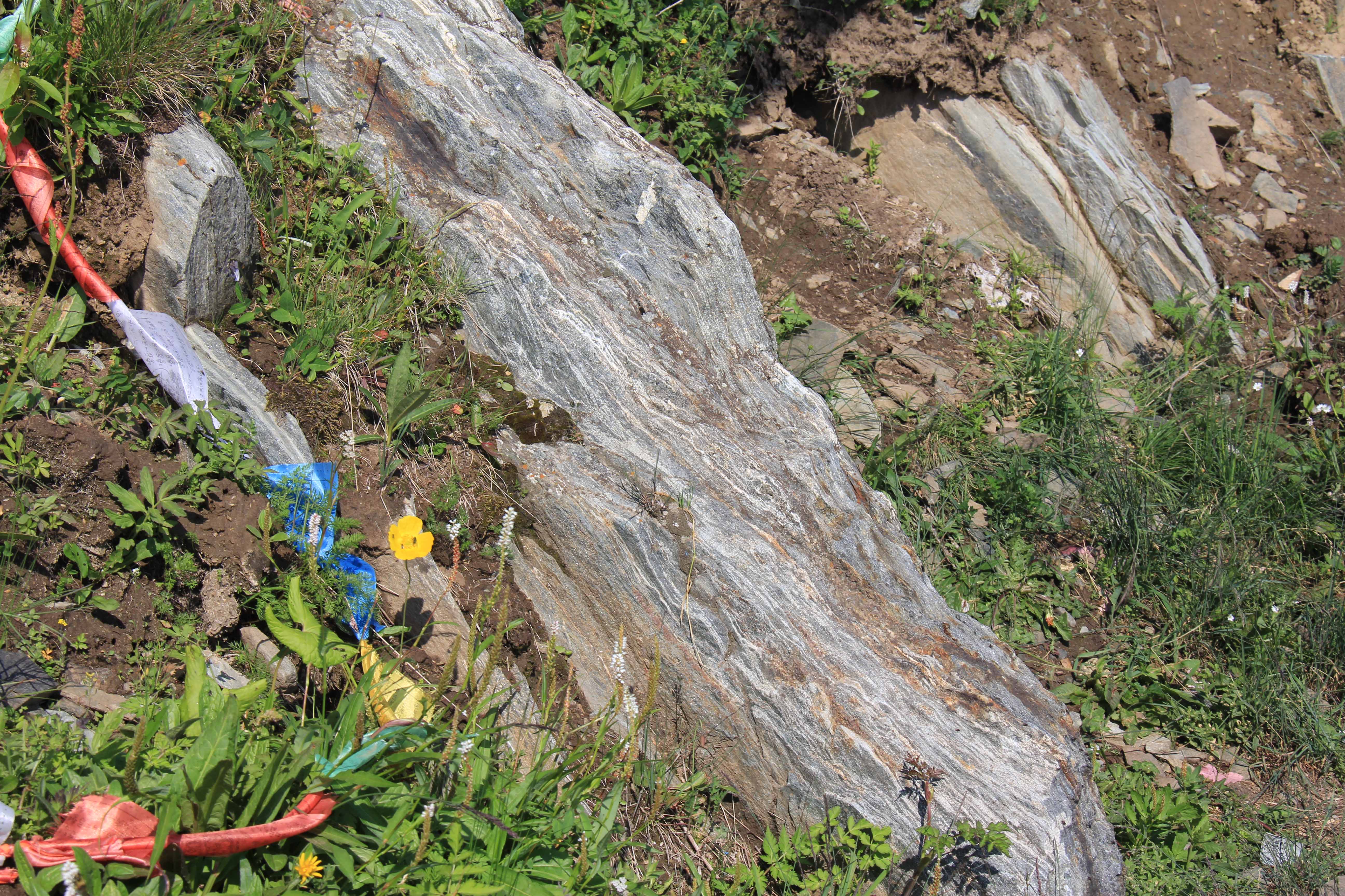 冻胀土丘从2200米以上开始发育,海拔2750米以上密集发育。东台夷平面海拔2776米,冻胀土丘广泛发育,呈穹丘形,长20-50厘米,高10-30厘米,其上生长有蒿草、苔草、萎陵菜、珠芽蓼等植被,土层厚达80厘米以上。石海主要由绢英片岩、绿泥石英片岩、斜长角闪岩构成,砾径多为10-15厘米,呈瓦片状,且被亚高山草甸覆盖。