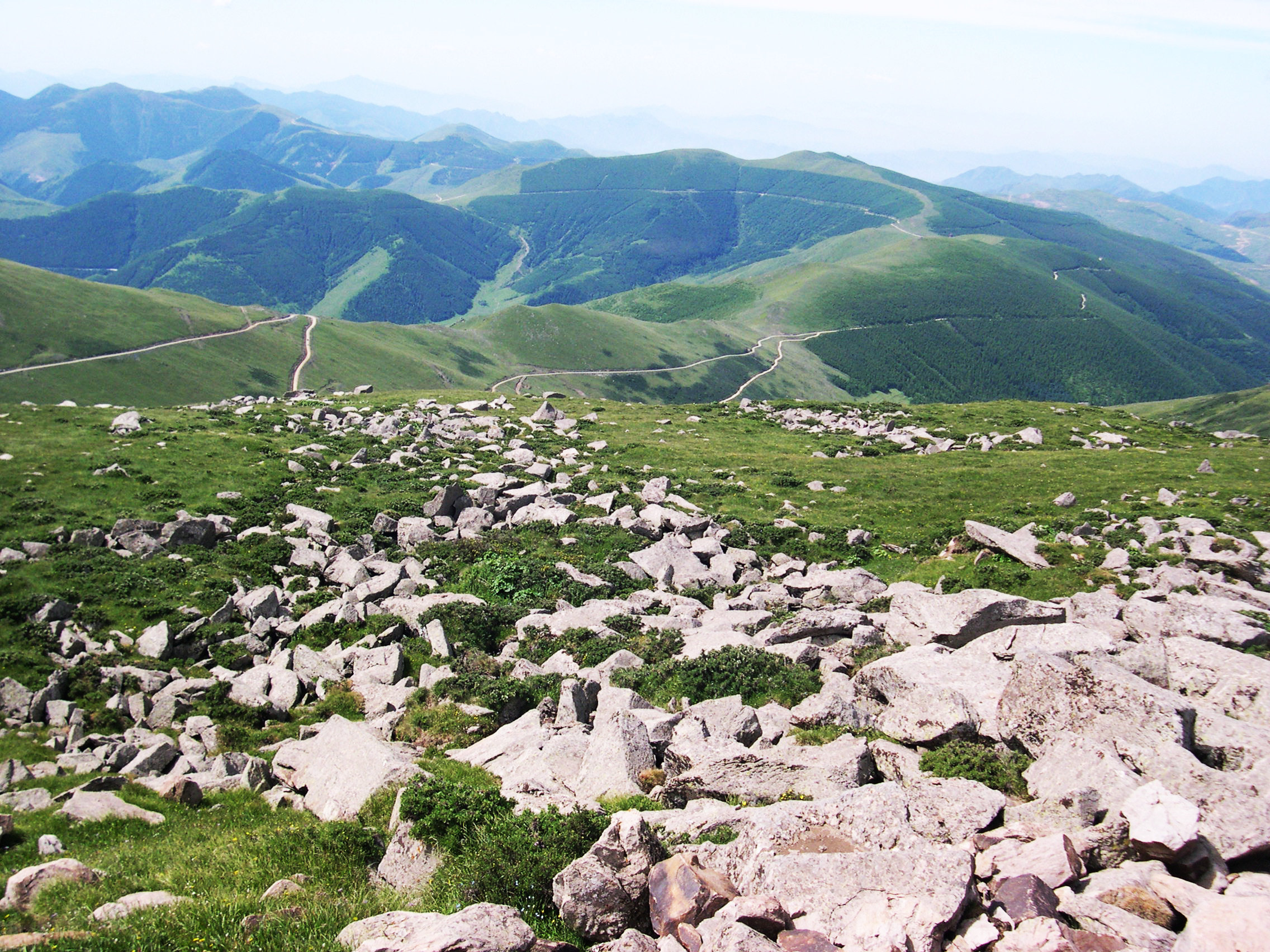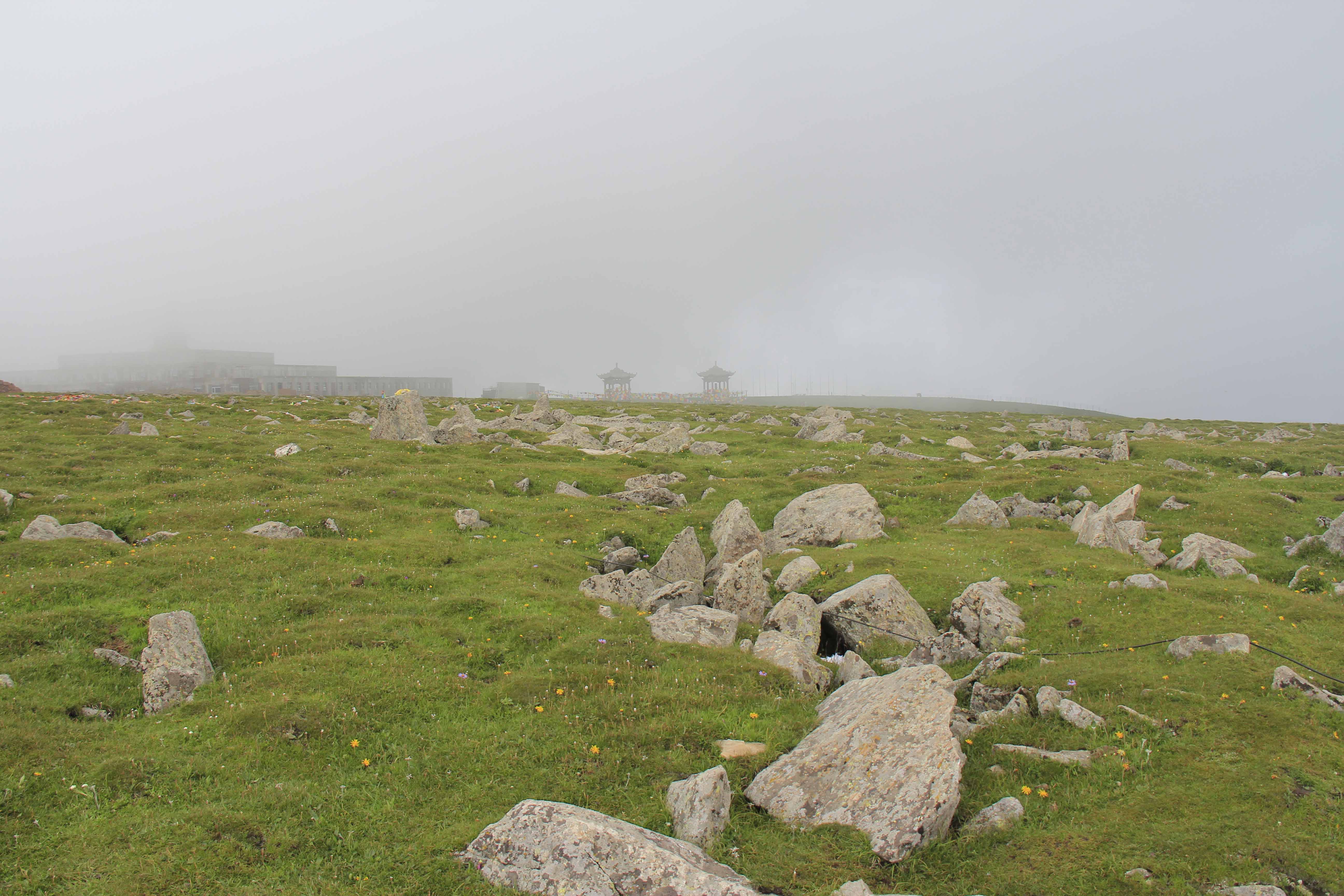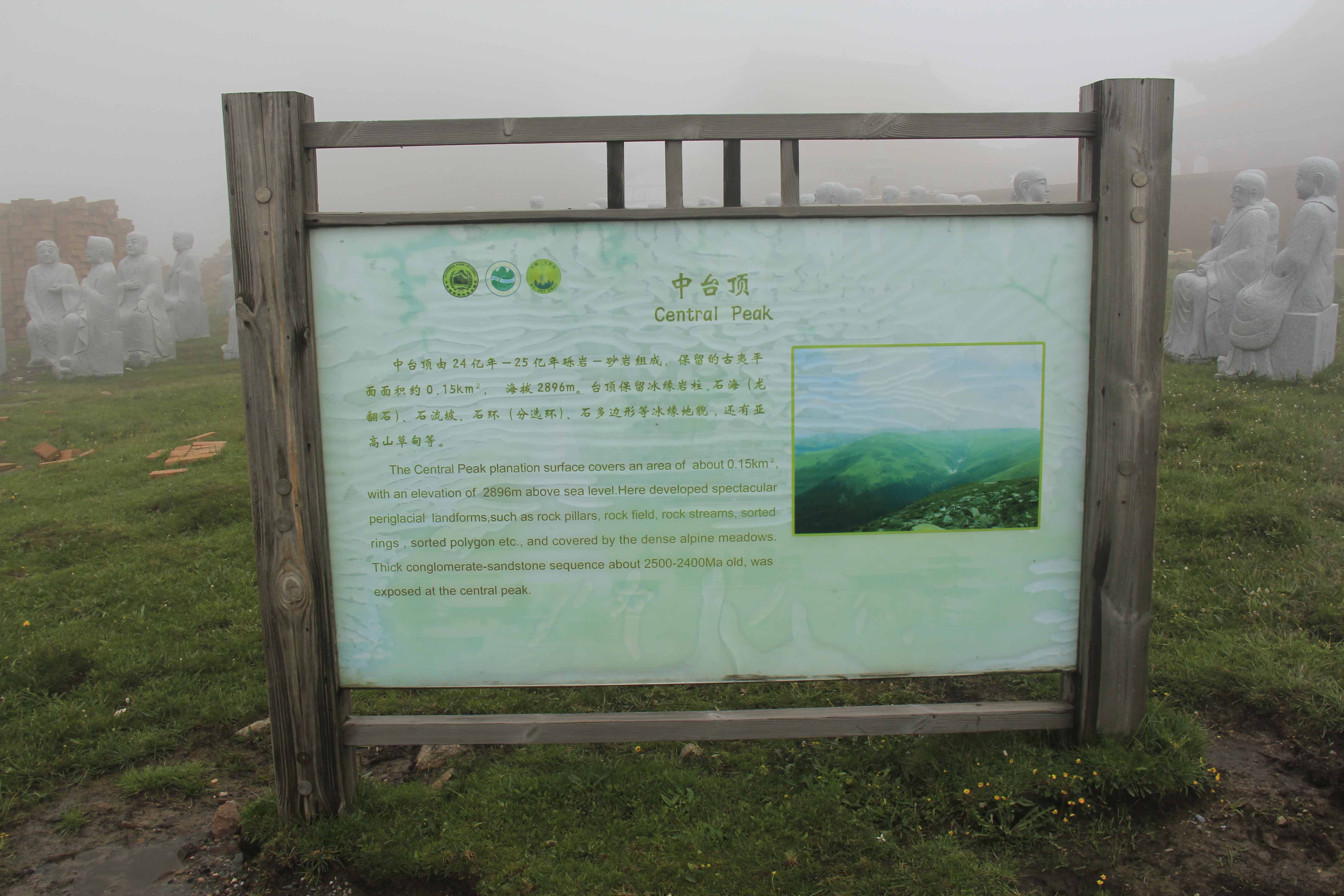 五台中台夷平面海拔2890米,为五台山第二高峰,也是华北残存最古老、第二高的夷平面。夷平面顶部平坦,残存面积约0.15平方千米,是五台山典型的夷平面之一,“北台期”夷平面的命名地。中台夷平面地质体岩性为四集庄组变质砾岩及片麻岩、绿片岩。夷平面上亚高山草甸,奇花异草遍布。石海、石条、石环、冻胀石块、冻胀土丘等冰缘地貌交替出现。在长期的冰缘作用下,夷平面顶已经很难找到夷平过程中发育的砾石等沉积物。台顶冰缘地貌可以显示冰缘现象的区域特征。在全球气候变暖的背景下,五台山的冰缘地貌是监测气候变化的“指示器”(崔海亭,2003)。总之,其独特的地质地貌条件,具有科学考察及科学普及价值。