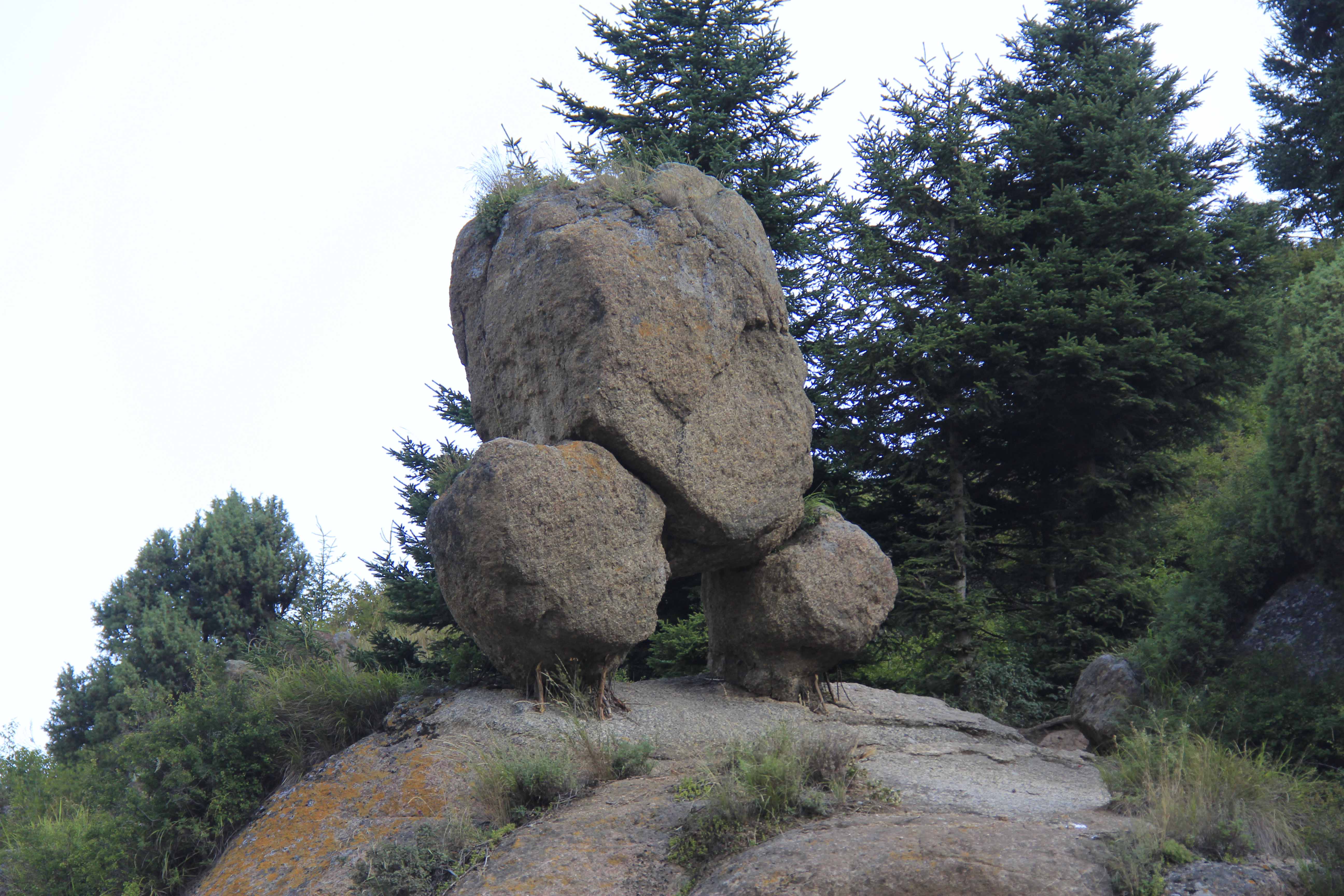 支锅石在离地面约10米处的平台之上,高约3米,宽约2米,以两块小石作支脚,整体呈品字造型,虽矗立于斜坡,风吹似动,但数百年来,却一直屹立不倒。支锅奇石,由于形似加盖的锅,支撑它的两小石形若锅脚,故而人称“支锅石”,为宁武八大奇景之一。据传,治汾大师台骀治理汾患时,曾在楼子山坡置一大锅,用管涔松木燃火,经年累月地熬煮汾洪,终于将洪水煮干,汾患平息,后来台骀煮洪水的大锅变成了支锅石。