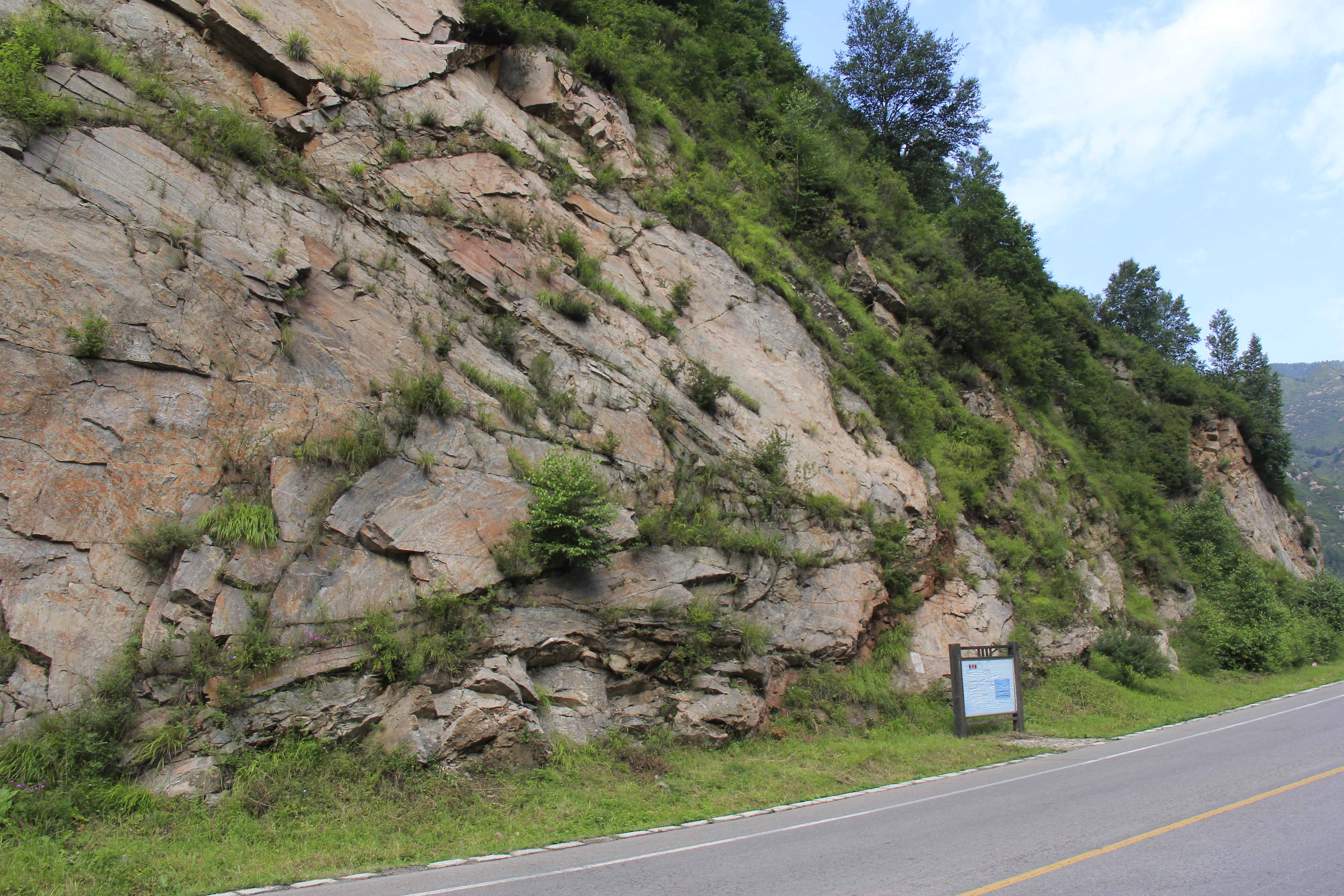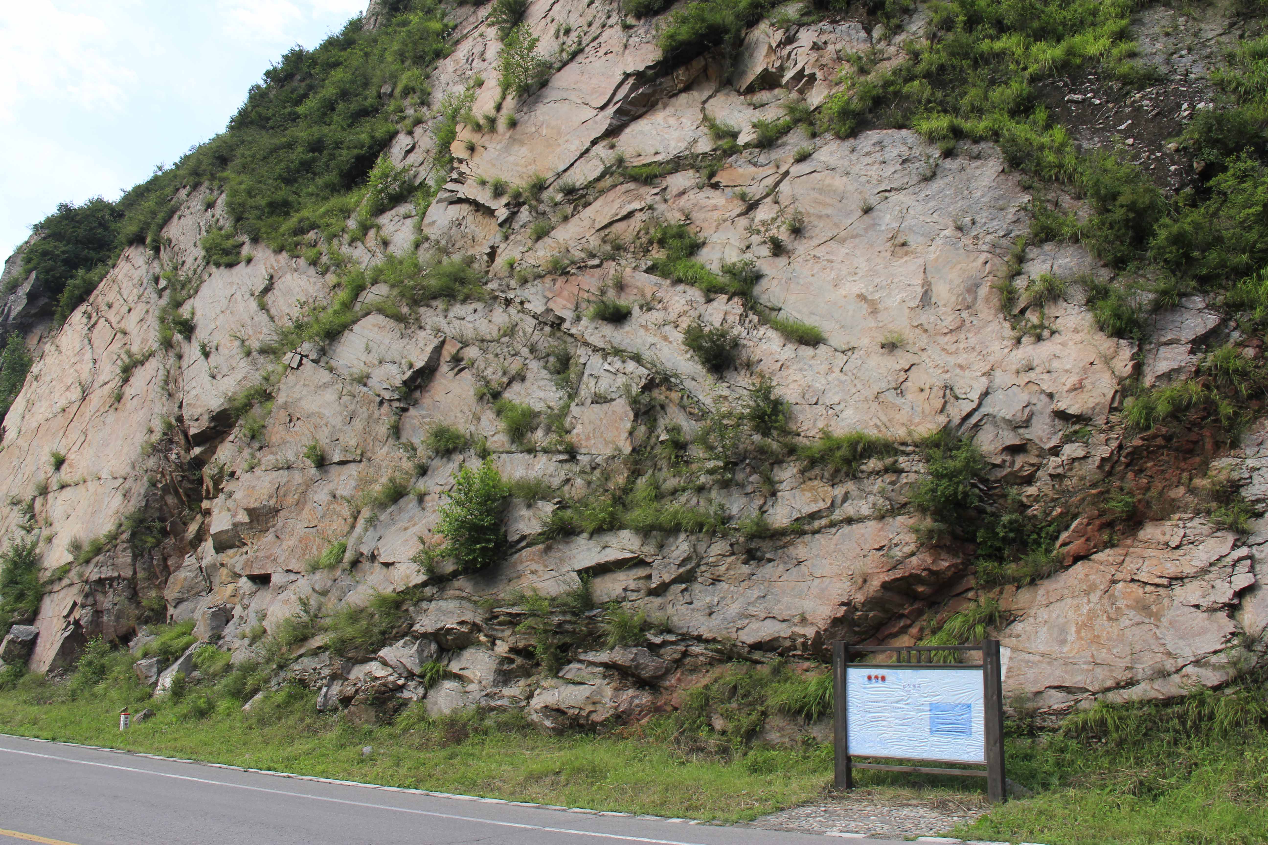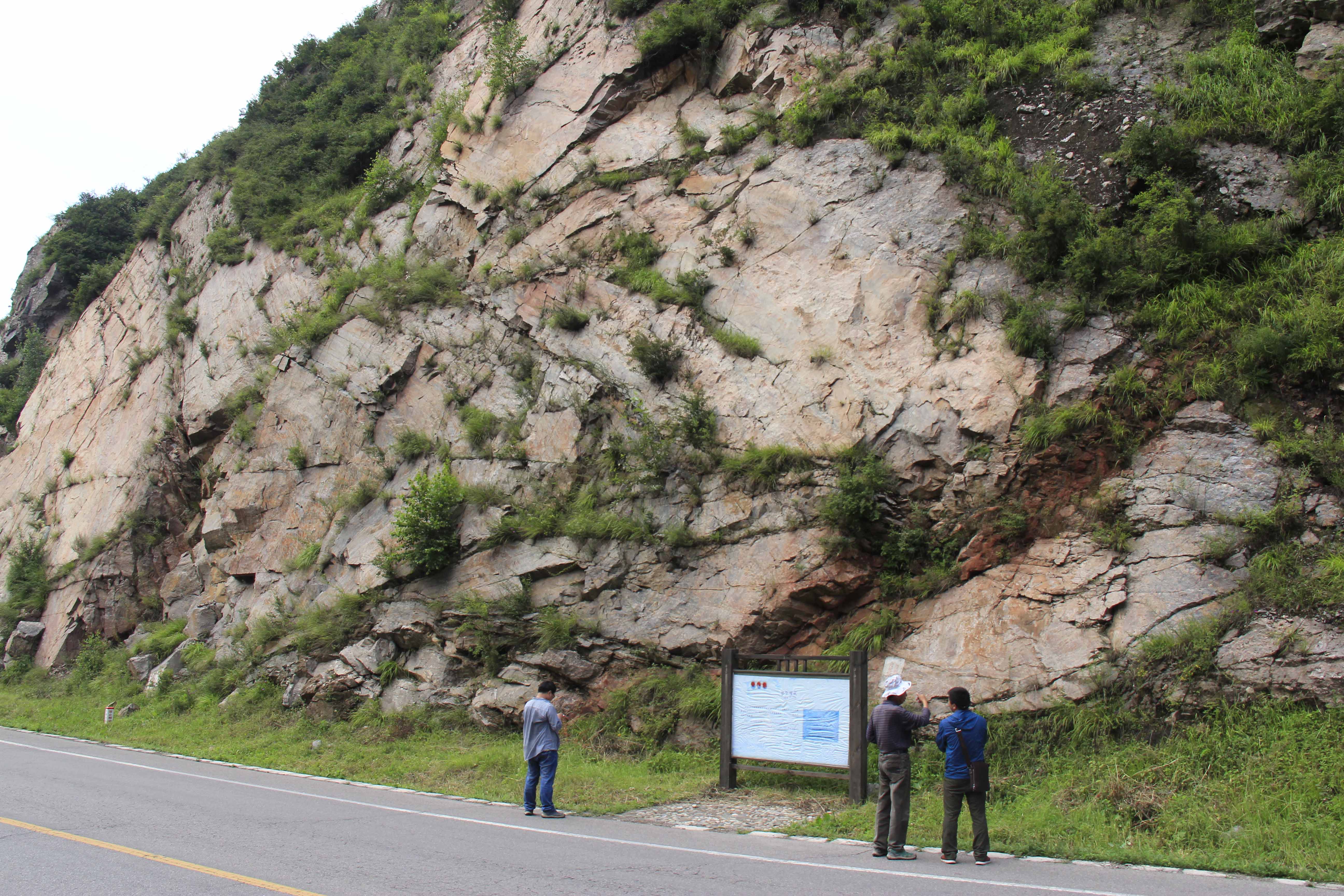 五台明月池平卧褶皱位于五台山国家地质公园台怀镇明月池西侧,大石线路边岩层断面上。该褶皱高30米,长50米,枢纽产状近水平,为典型的倒转褶皱。地质体岩性为四集庄组巨厚层砾岩,有一条宽50厘米的石英岩脉体倾斜贯穿,与平卧褶皱两翼斜交。该褶皱两翼开口朝北,由此推断为由南向北的强应力推覆运动中形成。此处褶皱轮廓清晰,两翼与水平面有20度的交角,层面特征保存完整,未受到后期构造运动破坏。五台山变质岩区韧性剪切带、逆冲断层、叠加褶皱多期面理构造非常发育,岩层内广泛发育构造叠置和多期变形,该褶皱是其中的典型代表,且靠近公路易于参观。